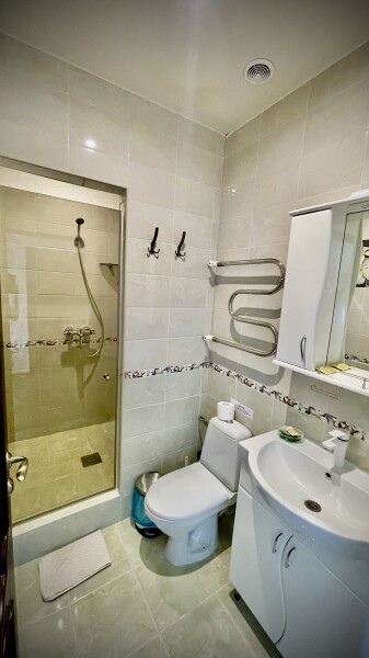 | Комфорт 4-местный | 25 кв.м. | 4 чел. | Мебель (вешалка, зеркало, кровати односпальные, кровать двуспальная, прикроватные тумбочки, стол, ст... | |