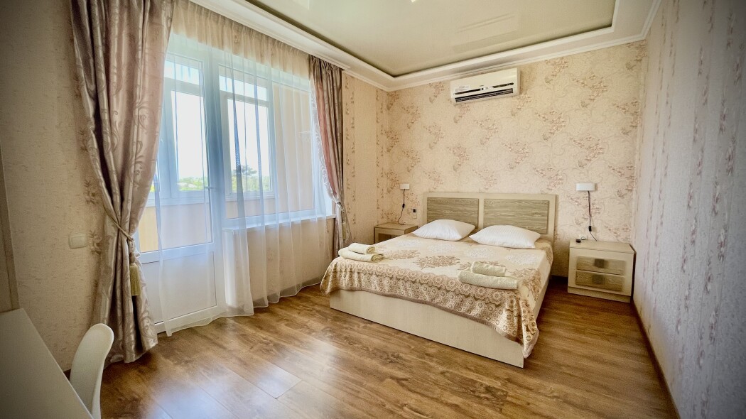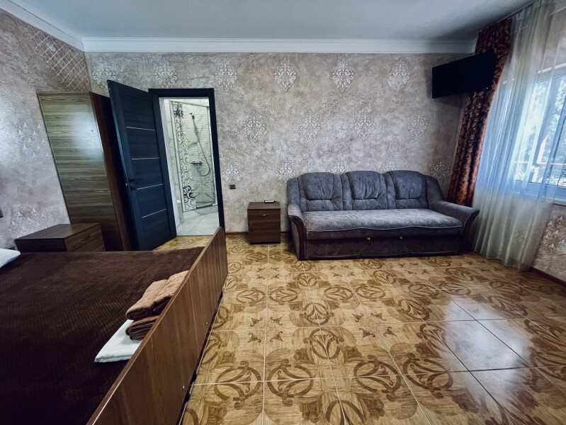 | Полулюкс 3-местный | 22 кв.м. | 3 чел. | Мебель (вешалка, диван, зеркало, кровать двуспальная, прикроватные тумбочки, шкаф), Оборудование (ко... | |