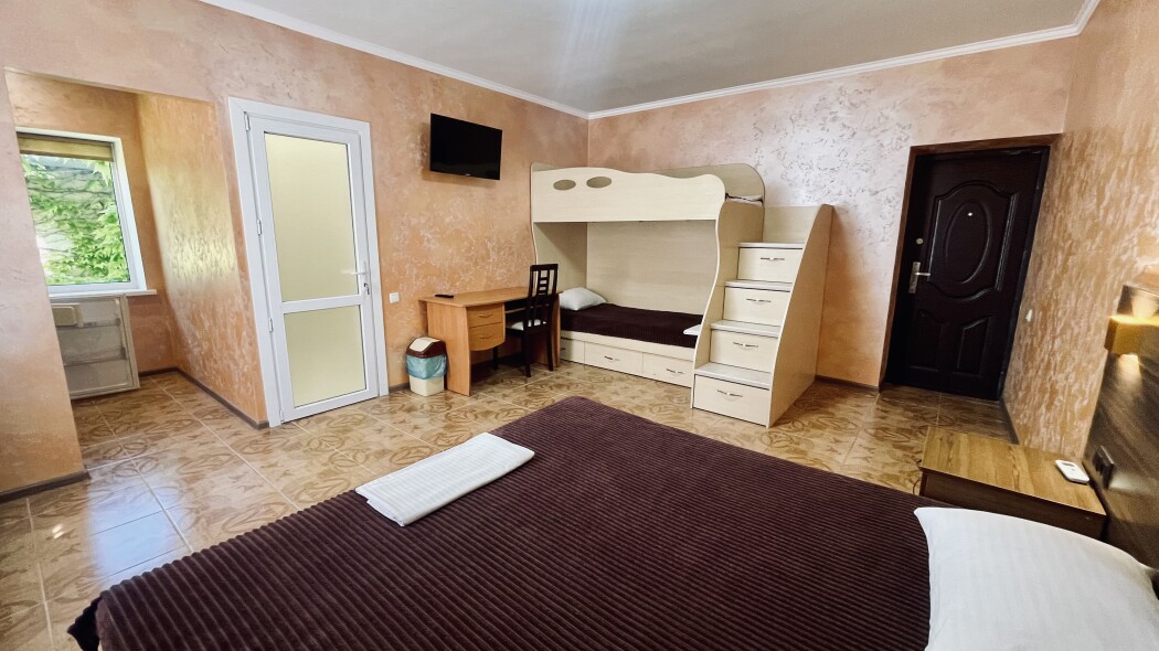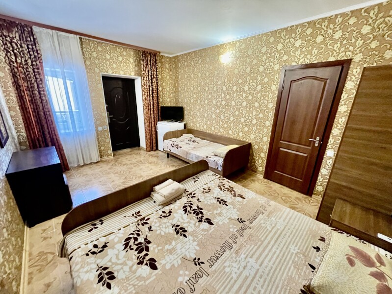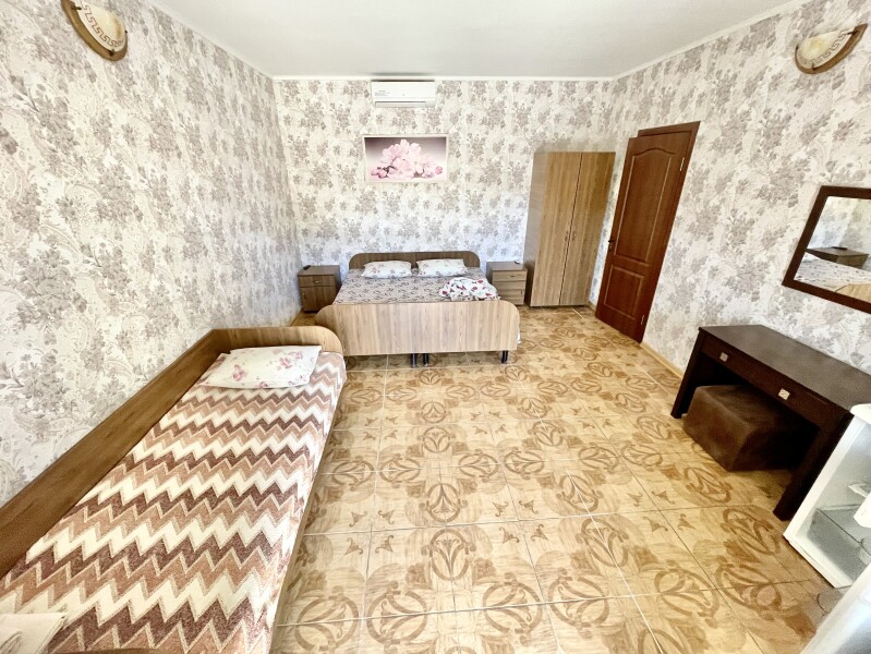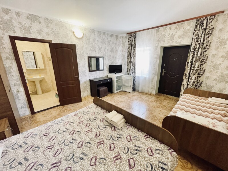 | Комфорт 3-местный | 20 кв.м. | 3 чел. | Мебель (вешалка, зеркало, кровать двуспальная, кровать односпальная, пуфик, стол, шкаф), Оборудовани... | |