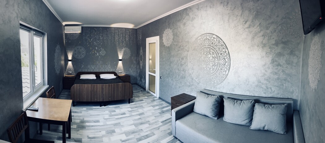| Комфорт 4-местный с диваном | 30 кв.м. | 4 чел. | Мебель (вешалка, диван раскладной, зеркало, кровать двуспальная, прикроватные тумбочки, стол, стулья... | |